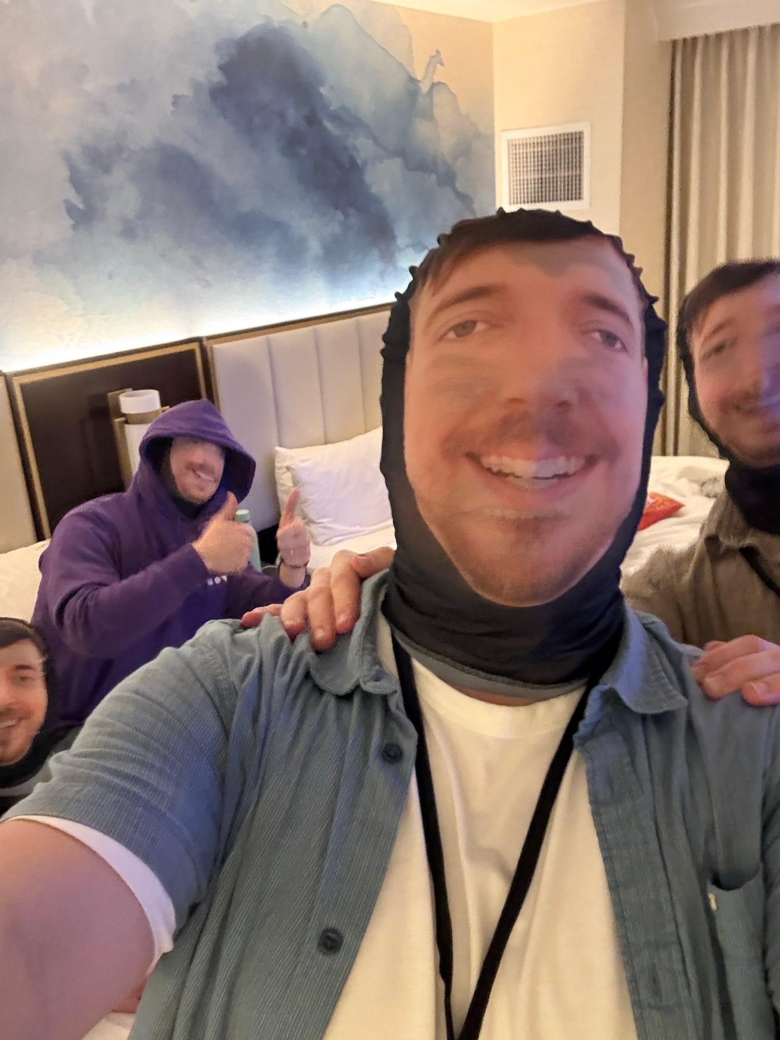 - a friend surprised us with a bunch of Temu-bought Mr. Beast masks on Saturday night and we inflicted our Beastification on a number of people. My personal favorite was the person who saw us walk into the arcade and immediately vomited.