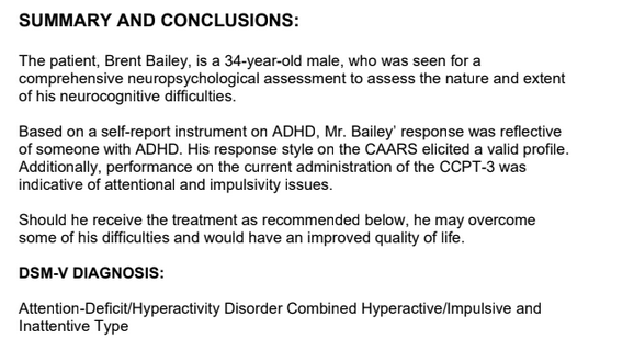 I got diagnosed with ADHD this month. This will likely come as no surprise to anyone who knows me even a little bit - I've already been getting treated for it on and off for the last few years, and given my entire deal it's not a terribly shocking development. They had me fill out a survey about how often I forget things and how much my struggles with executive function cause me difficulty in my personal life ("Highly Agree" in both cases) and then do the Conners Continuous Performance Test, where various letters flash on the screen at different speeds and you are supposed to press the spacebar after every letter except X. This was maybe the most frustrating test I've ever taken in my life but I guess it helped them ensure that I have problems with impulsivity and inattention.