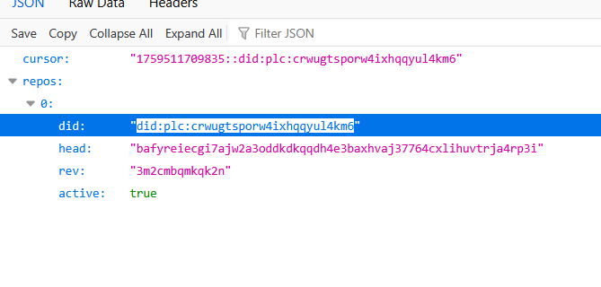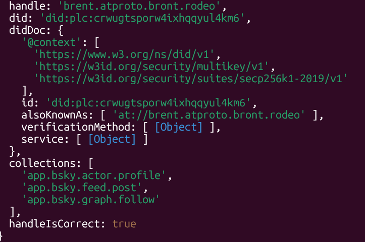 This was astonishingly easy to do, and feels like a flashpoint moment for me on understanding the appeal of atproto. It literally took me ten minutes to set up a self-hosted server that I can use for oauth and cross-application storage. That's insane! So insane that I feel like I must be missing something, so I did a quick API check to see what all I can get directly from my server. I went to https://atproto.bront.rodeo/xrpc/com.atproto.sync.listRepos and found my did: